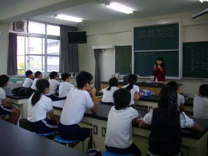 授業体験は、中学校の先生から特別授業をしていただきました。とても楽しく興味深い授業でした。午後からの2時間程度の時間でしたが、とてもよい体験ができました。中学校の先生方、生徒の皆さん、ありがとうございました。