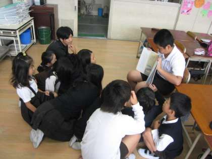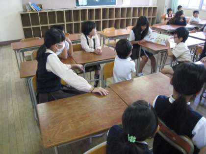今回の児童集会は、縦割り班に分かれての読書集会です。各班の班長が、本を選び読み聞かせをしました。班の子どもたちが絵本を見やすいように広げながら上手に読み聞かせをしていました。聞いている下級生もしっかり聞けていました。