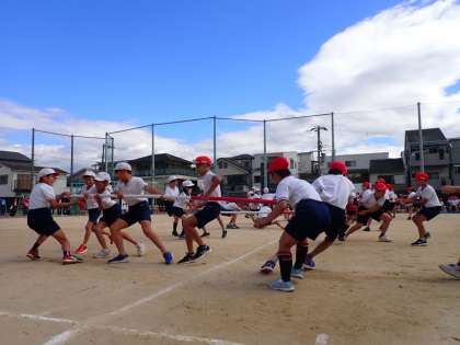 本日、第92回運動会を実施しました。今年は紅組と白組に分かれて競技や演技を行いました。会場には子どもたちの元気な声が鳴り響き、めあての「みんなの力で一致団結!あきらめず!全力でやりきろう!」を体現することができました。