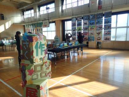 学習参観に合わせて作品展を開催しました。普段の学習の成果を発表する場であるとともに、相互に作品を鑑賞することを通じて、より一層、創作への意欲を高めることができました。多くの保護者や地域の皆様に鑑賞していただき、どうもありがとうございました!