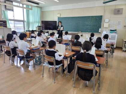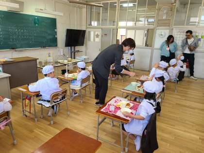 1年生は、給食参観。みんなしっかりと楽しく給食を食べている様子を見ていただきました。2年生は、算数のかたちの学習を、3年生は、国語の音読の工夫を見ていただきました。