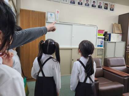 4月24日(水)1・2年生が生活科の学習で学校探検を行いました。2年生が1年生に学校にある教室を案内しました。見学を終えたら、1年生にシールをやさしく渡している2年生の様子も見られ、頼もしかったです。校長室にも見学をしに来てくれました。