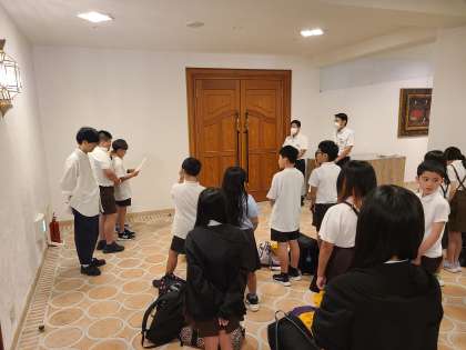 8:15、ホテルでの最後の行事「閉舎式」を行いました。ホテルの方からもマナーの点でお褒めの言葉をいただきました。立つ鳥跡を濁さず、部屋もきれいに片づけて、いまから鳥羽水族館へ向かいます。