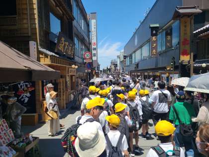 おかげ横丁でのお土産の購入、食べ歩きを終え、14:00に帰路につきました。学校には、今のところ予定通り17:00頃の到着予定です。