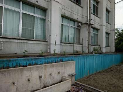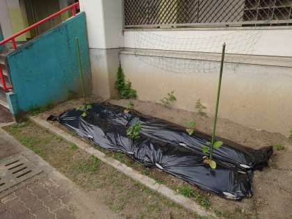 そのなかで、学校がすずしくなるように壁面緑化、エコなグリーンカーテンを目指した植物も植えています。