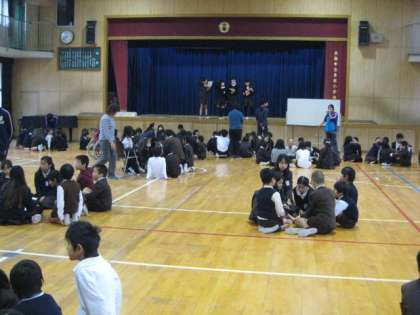 今回の児童集会は回文づくりです。縦割り班ごとに回文を作って発表しあいました。思った以上にたくさんの回文ができました。