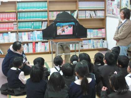 今回は紙芝居です。紙芝居の題は「桃太郎」です。昔話に触れることが少なくなってきたこの頃ですが、たのしくお話を聞くことができました。