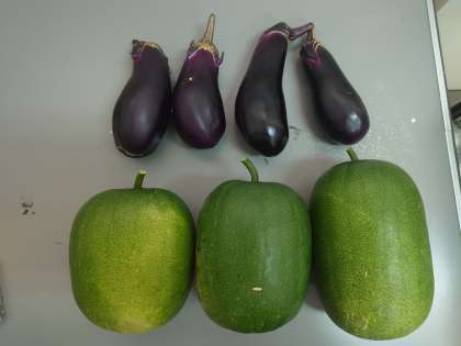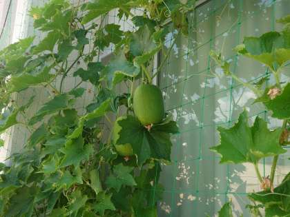 6月にお知らせしていた姫冬瓜もこのようにとても大きくなり、収穫できるほどになりました。暑すぎて少し傷んでいる箇所もありますが、このまま成長を続けてほしいものです。
