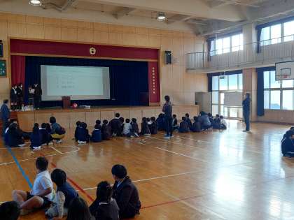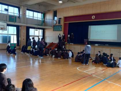 集会委員会が6年生にアンケートをし、作成したクイズです。好きな漫画や多い血液型などのクイズで盛り上がりました。