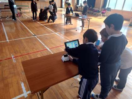 本日、今福地域活動協議会の今福プログラミング教室から講師をお招きし、4年生を対象に出前プログラミング教室を実施しました。ロボットカーを用いてプログラミングの体験活動を行い、何度もプログラムの書き換え作業を繰り返すことによって、論理的に物事を考える力を養うことができました。