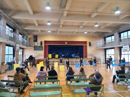 6年生は、感謝の会と称して、運動会で行ったフラッグの演技、合唱などを心を込めて保護者の皆様に届けました。