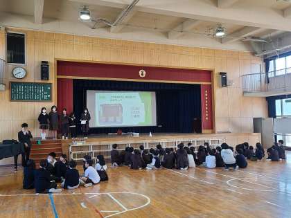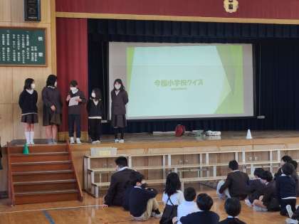 3月10日(月)今年度最後の児童集会を実施しました。集会委員会からの学校クイズでした。玄関にある鐘や慰霊碑について、先生がかけている眼鏡についてなどの問題が出されました。消火器の数が一番盛り上がる場面でした。集会委員会の皆さん、1年間ありがとうございました。