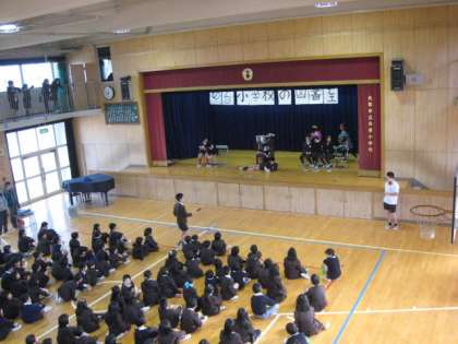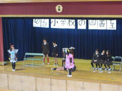 今回の児童集会は図書委員会の児童による発表です。図書室の正しい使い方についてクイズ形式で発表しました。わかりやすい発表でした。