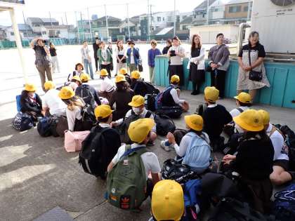 雨予報の心配を吹き飛ばす晴天で、出発式では子どもたちもニコニコ笑顔。