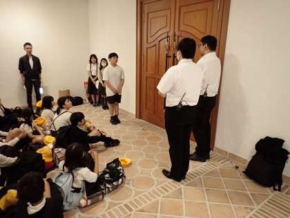 スペイン村から徒歩でホテルに到着。開舎式では、宿舎の方への挨拶もしっかりと行えていて、成長を感じました。