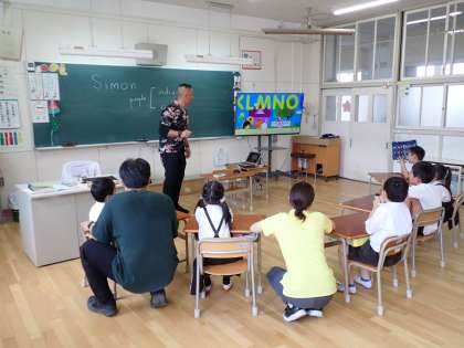 7月8日(火)ECCから外国語講師を招いて外国語活動を行いました。1年生にとっては初めての活動でしたが、英語で自己紹介をしたり、歌ったり踊ったり、とても上手にできていました。2年生にとっては今年度初めての活動でしたが、みんな笑顔で楽しい時間になりました。