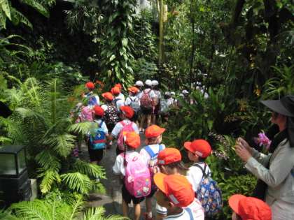 晴天の下、1年生2年生が鶴見緑地公園に遠足に行きました。先生のお話をしっかり聞きルールを守って遊具で遊ぶことができました。咲くやこの花館ではたくさんの草花を見ることができました。途中、乗馬のエリアでは馬を間近に見ることもできました。暑さも厳しすぎず楽しい遠足でした。