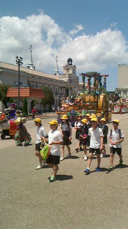 スペイン村では、班ごとで活動しています。パレードを見ることもできました。