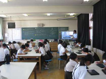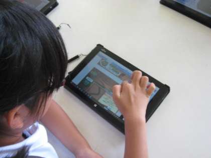今日は、ICT支援員の方に来ていただいてタブレット端末を使った学習をしました。5年生では理科で「植物の受粉と結実」について学習をしました。タブレット端末を使って学習のまとめとしてクイズをしました。