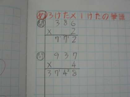 今日の算数の授業は3位数×1位数の筆算ににつて学習していました。