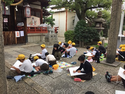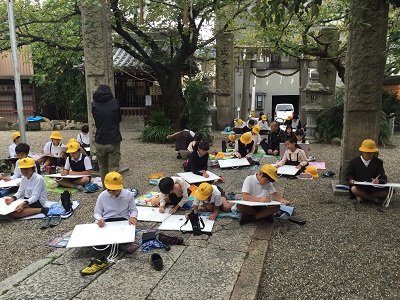 5年生は毎年、皇大神宮の写生をしています。じっくり建物の特長を観察し、絵を描きます。時間をかけて絵を描く機会をとることで、新たな発見があり、素晴らしい作品ができることでしょう。