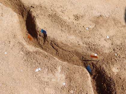 5年生が理科で「流れる水のはたらき」を学習しました。運動場の土の山に自分たちで川を作り、ホースで水を流して、川岸のけずられる様子や土の積もる場所などを確かめました。楽しみながら集中して学習に取り組んでいました。