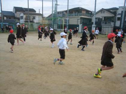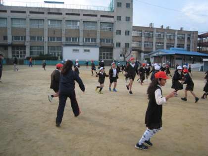今回は先生がおにになっての「おにごっこ」です。児童も先生もいっぱい走りました。