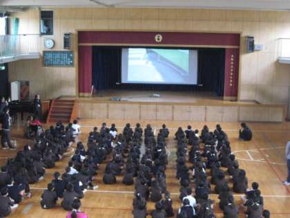 2学期の終業式を迎えました。校長先生のお話の後、生活指導の先生から冬休みの生活について注意することのお話を聞きました。最後に、交通安全学習を全校でしました。