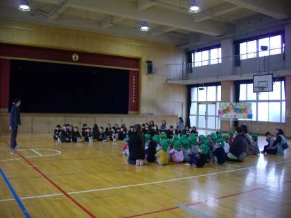 2月1日、今福保育園の年長さんをお迎えして、1年生による歌の披露のあと、みんなで昔遊び(こままわし、けんだまなど)をして遊びました。今福小学校に入学する園児もいますので、保育園と小学校のよい連携になりました。1年生は4月になると、お兄さん・お姉さんになるという自覚がめばえたと思います。