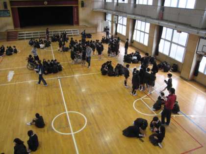 登校班で集まり、班ごとに注意すること等を話し合いました。今年からは各学期に2回話し合う時間を持つことにしています。