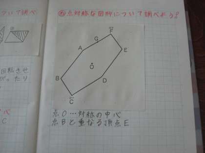 6年生は算数で対称な図形の学習をしています。今日は点対称な図形の学習でした。