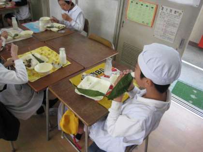 今日は、牛肉のちらしずし、すまし汁、ちまき、ごはん、牛乳の「こどもの日の行事献立」でした。とってもおいしかったです。ちまきもとても風味がよかったです。