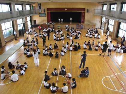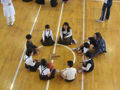 いよいよ異学年の児童で班をつくる、縦割り班での活動が始まりました。今日は班ごとにボールを使ったゲームをしました。班ごとに楽しい会話が聞こえました。