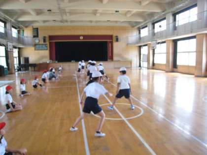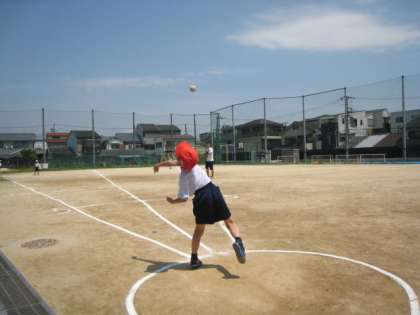 今日から体力テストを始めました。屋外では、天気がよかったので、50m走やソフトボール投げなど、力いっぱい取り組みました。屋内では、反復横跳びをしました。