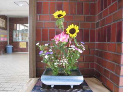 本校は、以前から玄関や校長室前に地域の方が花を活けてくださっています。今月も、きれいな生け花を飾っています。ありがとうございます。