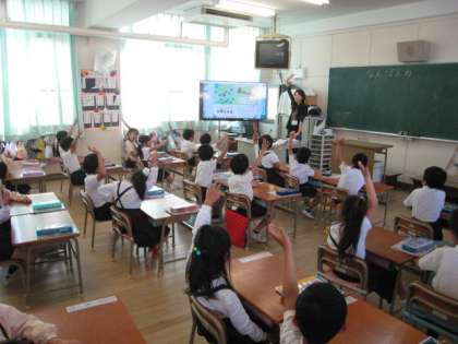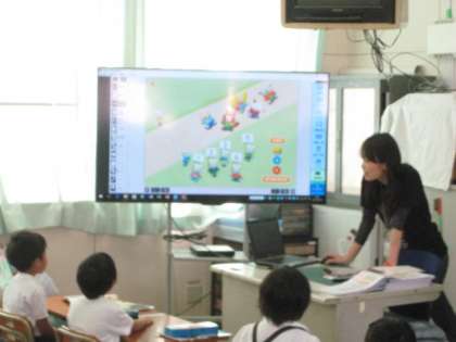1年生の算数では、大型液晶テレビと授業用パソコン、デジタル教科書を使って授業をしました。画像の動きがありとても分かりやすい学習でした。