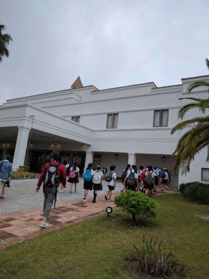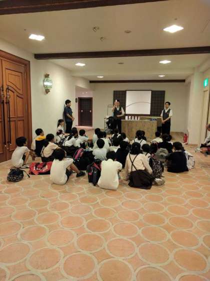 宿泊先のホテル志摩スペイン村の到着しました。ホテルの方からお話を聞いています。