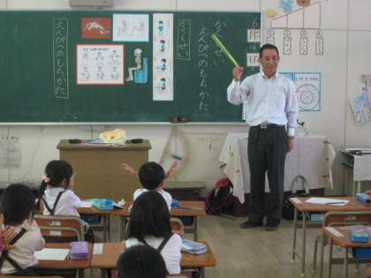 本校では、低学年において、上手に鉛筆を持って文字を書くことができるように特別に講師を招いて指導してもらっています。1年生では、持ち方の練習を、2年生では昨年度学んだことから、正しい持ち方を写真で見合って、気を付けるところを考えました。