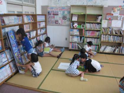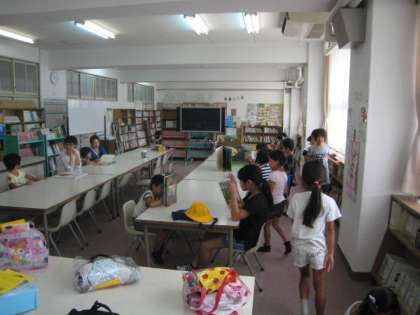 プール開放に合わせて図書館開放も始まりました。静かに本を読んでいました。