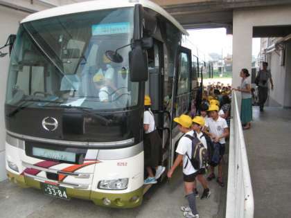 5年生の林間学習が始まりました。出発式では、校長先生から、自分でできることはしっかりしようと、集団行動についてのお話がありました。たくさんの保護者の皆様にお見送りの中、元気いっぱい子どもたちは出発しました。