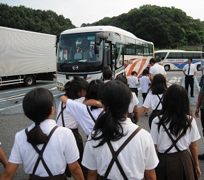 バスは赤松PAに到着しました。行列のできるトイレです。
