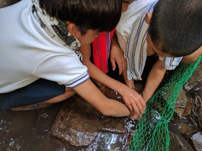 林間学習1日目魚つかみ その2