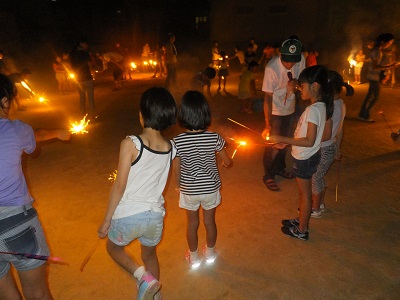 夕食後は、キャンプファイアや花火、きもだめしをして楽しみました。卒業生も手伝ってくれました。