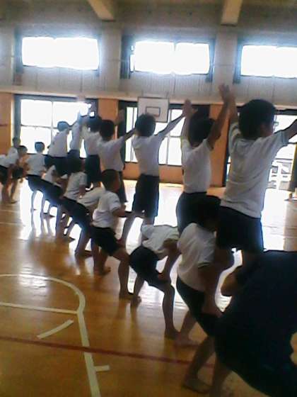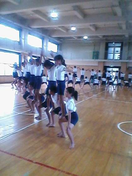 5年生6年生の演技の練習も佳境を迎えました。講堂で新しい技の確認をしています。
