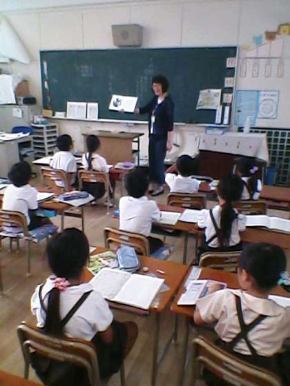 学校図書館補助員の方に毎週学年ごとに読み聞かせをしていただいています。今回は1年生でした。