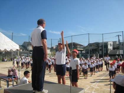 本年度の運動会は例年の日程より1週間早めて実施しました。開会式では、元気よく行進して入場し、応援歌も大きな声で歌うことができました。