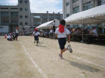 2年生の個人走は「ゴールをめざしてGo!」です。頑張って走りました。