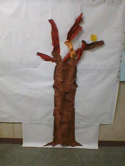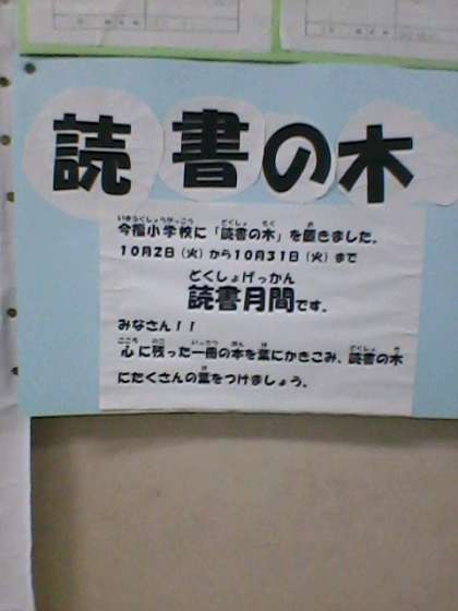 本校では読書の秋にちなんで10月を読書月間としています。本年度は、子どもや教職員が読んだ本を葉っぱの形をした紙に書き、模型の木に貼っていきます。どんな木ができるでしょうか。