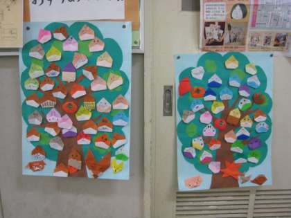 今年から、図書ボランティアさんに折り紙教室を開いてもらっています。今回は、低学年の子どもたちを対象に季節に合わせてどんぐりの折り紙を教えてただ来ました。たくさんのどんぐりできました。