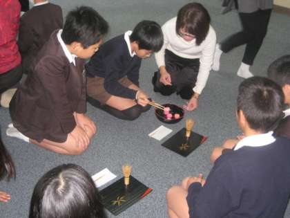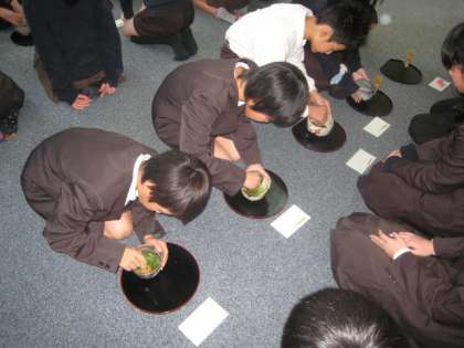 地域の皆様に来ていただき、茶道体験を5年生がしました。茶の湯の文化は古来から伝統的に伝わる文化ですが、大人になってもその心に触れることは少ないものです。子どもたちは伝統的な茶の湯の文化に触れ、その考えに驚いていました。